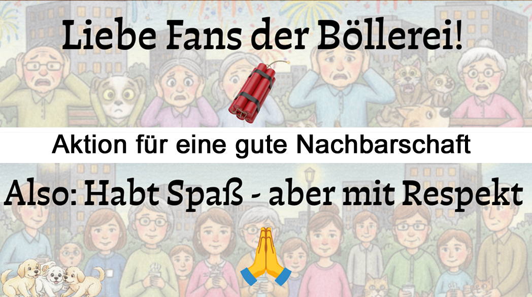 In der Gropiusstadt wird es rund um Silvester oft richtig laut – und leider nicht immer rücksichtsvoll. Über nebenan.de haben uns Nachbarinnen und Nachbarn darauf aufmerksam gemacht, dass Kinder, ältere Menschen und alle empfindlichen Mitbewohner inkl. Haustiere durch frühzeitiges Feuerwerk verängstigt werden. Für uns beim Gropiusstadt-Stammtisch war klar: Nur meckern reicht nicht. Aktiv werden macht einen Unterschied – und fühlt sich gut an.